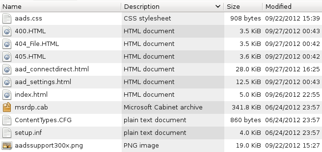 The default folder for the HTML-pages is below the Program Files folder or the ProgramData folder of the AADS Terminal Server:
