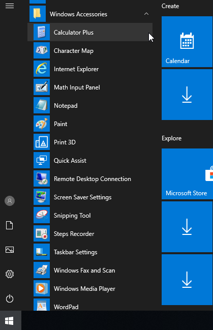 A "classic" version of Microsoft Calculator is installed, and shortcut is placed in the "Accessories" menu: