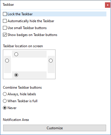 For reasons unknown it is not always possible to do "Taskbar Settings" by doing a right-click-mouse on the Taskbar (applicable to Windows 10 and Server 2016/2019...),