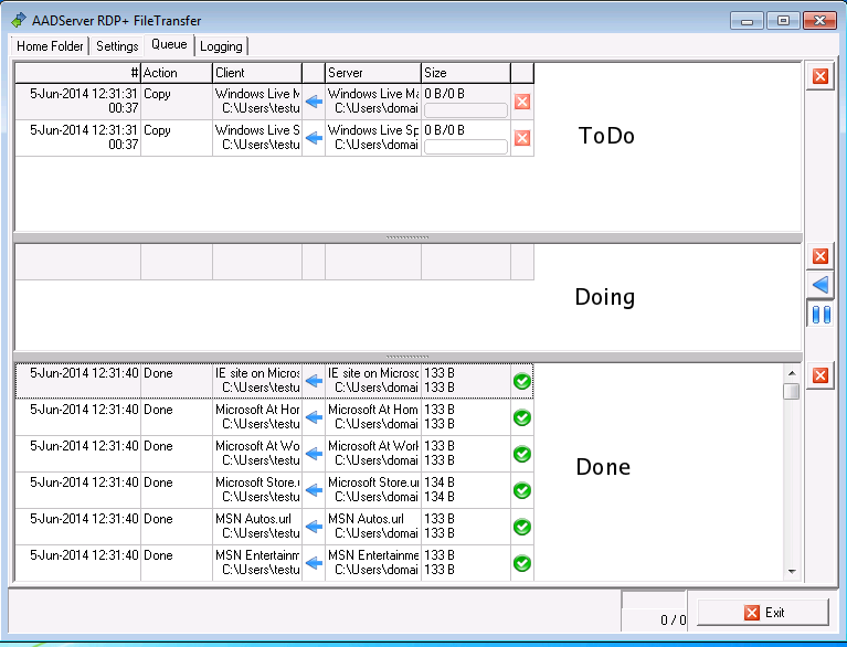 Using the Cancel buttons, the user can cancel those files that are on the "ToDo" list or are "Doing" list.