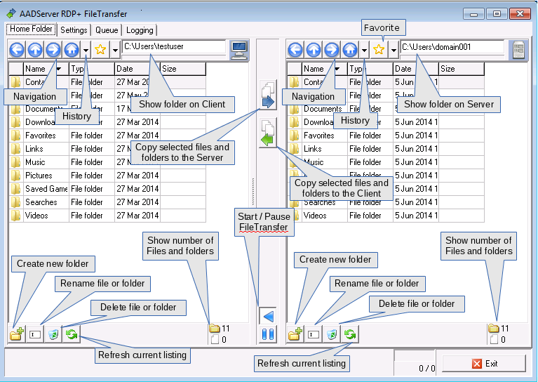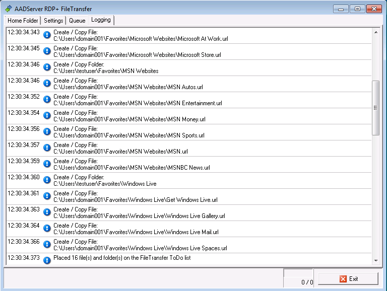 In the example above, the user is logged in on the Client PC with the userID "testuser". The user has a Remote Desktop Session, and is logged in on the Server with the userID "domain001".