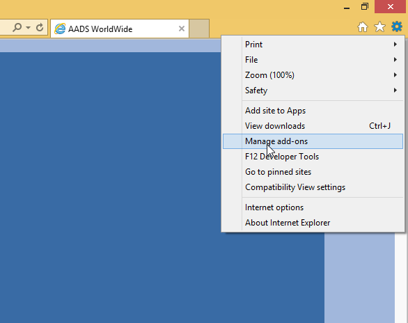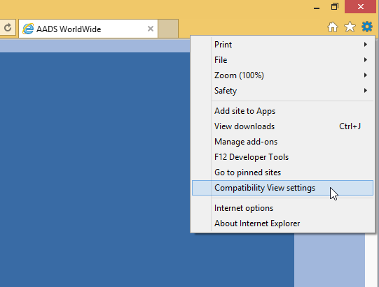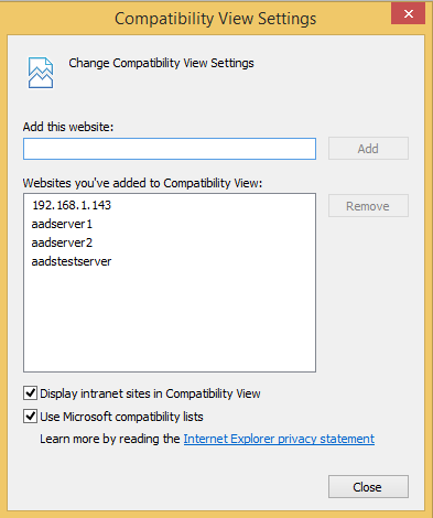 Using the "Tool - shaped" button, the user must "add" the AADServer to the list of servers for "Compatibility View ".